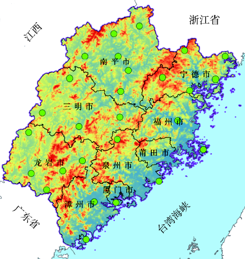 气象站点及地势图