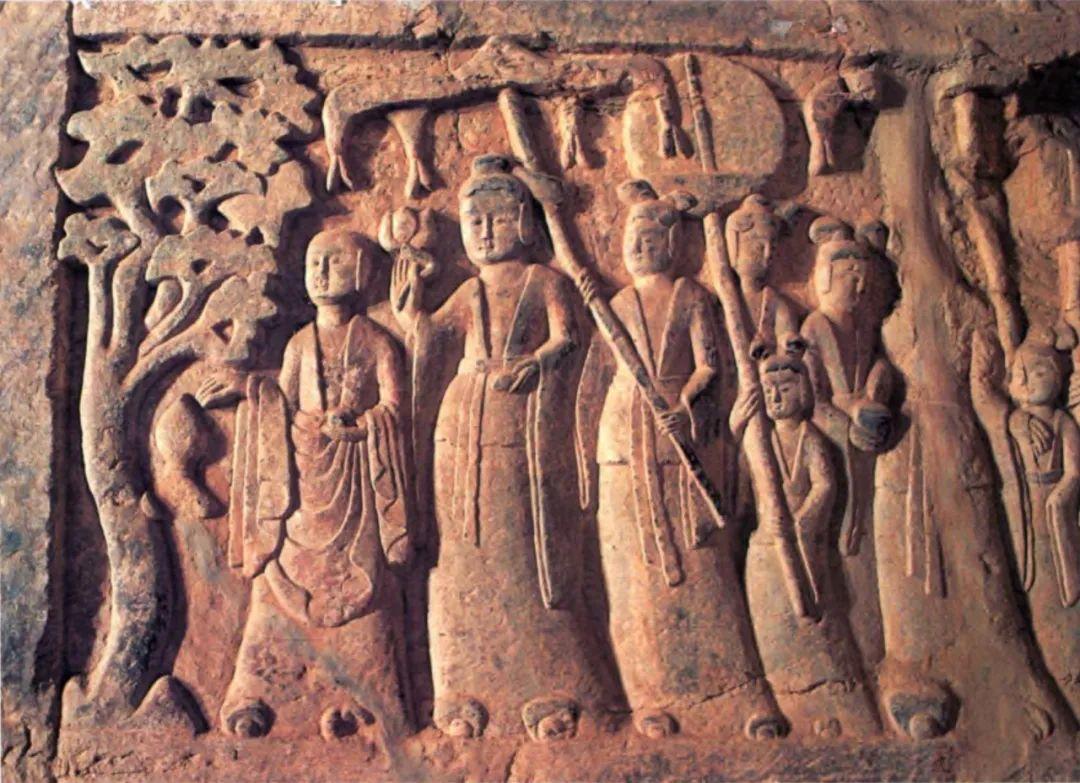 巩县石窟寺第3窟南壁西侧中层礼佛图局部。图片出自《中国石窟:巩县石窟寺》。