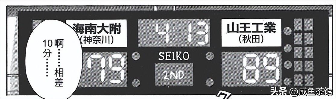 在漫画中展示的比赛过程只有收尾部分,下半场4:13秒的时候,山王领先十分。