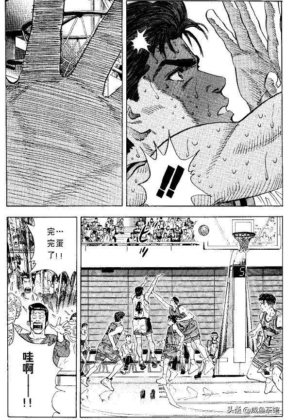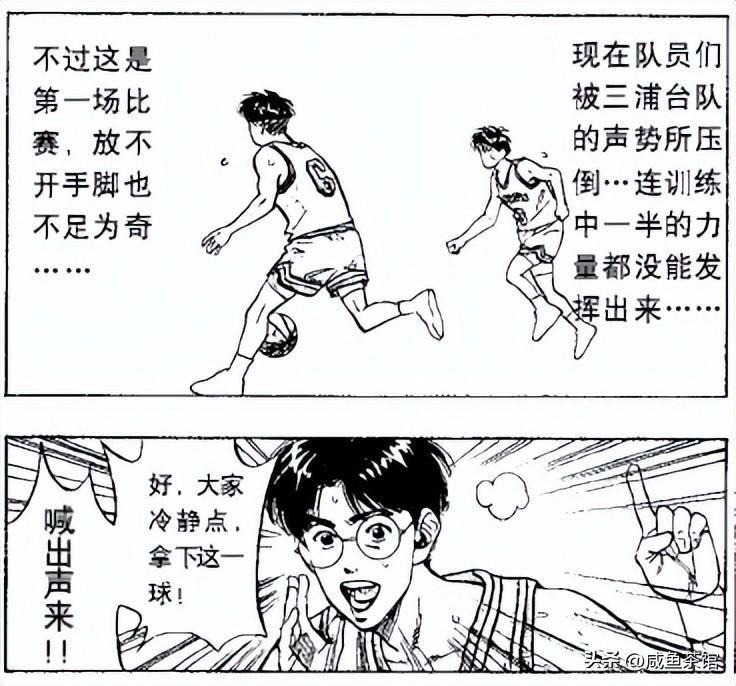 在三浦台一战,四虎因为篮球馆事件被安西锁在板凳席,赤木被三浦台联防锁死,安田潮崎角田三废又开始拉胯,连平时一半的水平都发挥不出来。