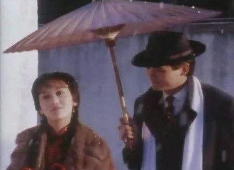 而同样扮演过许文强的周润发,在打伞时则温情脉脉,主动将伞倾斜向于冯程程(赵雅芝饰演),热恋的感觉呼之欲出。