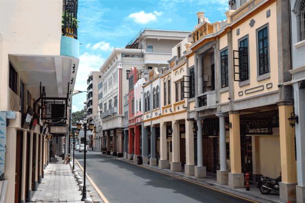 老街的建筑风格大部分是骑楼。骑楼是一种商住两用的建筑,一楼会留出一部分作为公共人行道,可以遮阳防晒,下雨时走在下面也不用打伞。