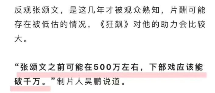 这也就是说,张译的片酬没有网传的那么高,而张颂文的片酬也没有网传的那么低!