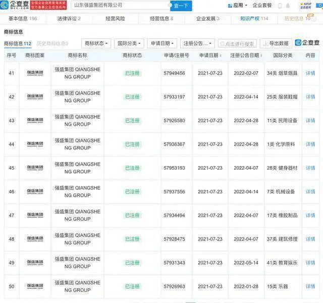 企查查显示,山东强盛集团有限公司成立于2020年1月,曾用名为山东强盛房地产开发有限公司,大股东为孙红雷,持股99%。知识产权信息显示,目前,该公司已成功注册多枚“强盛集团”商标。
