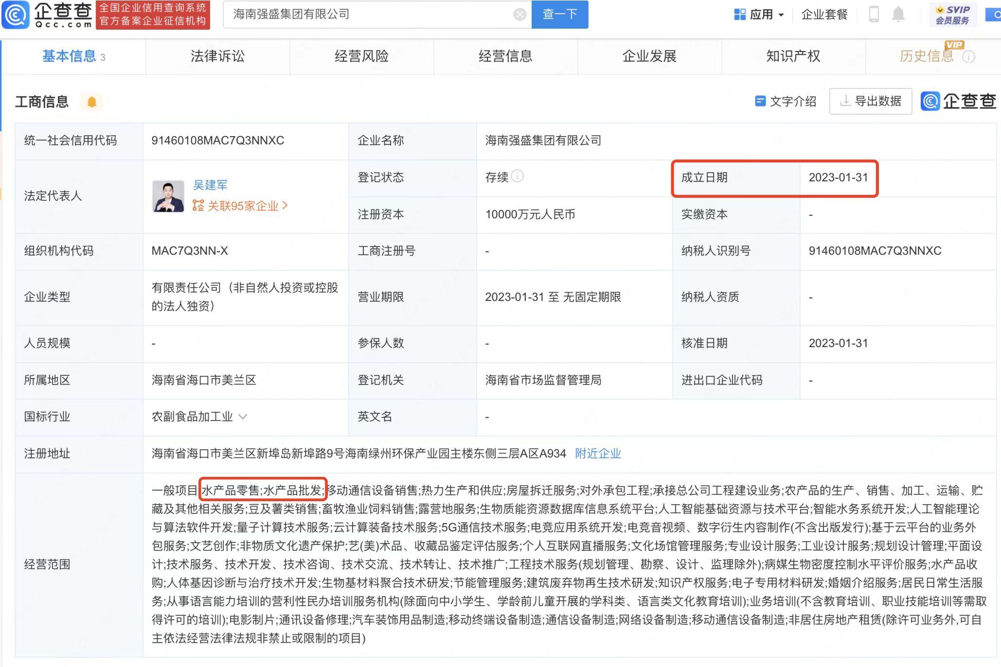 《狂飙》带货能力太强,海南又成立一家强盛集团卖水产-水产集团子公司