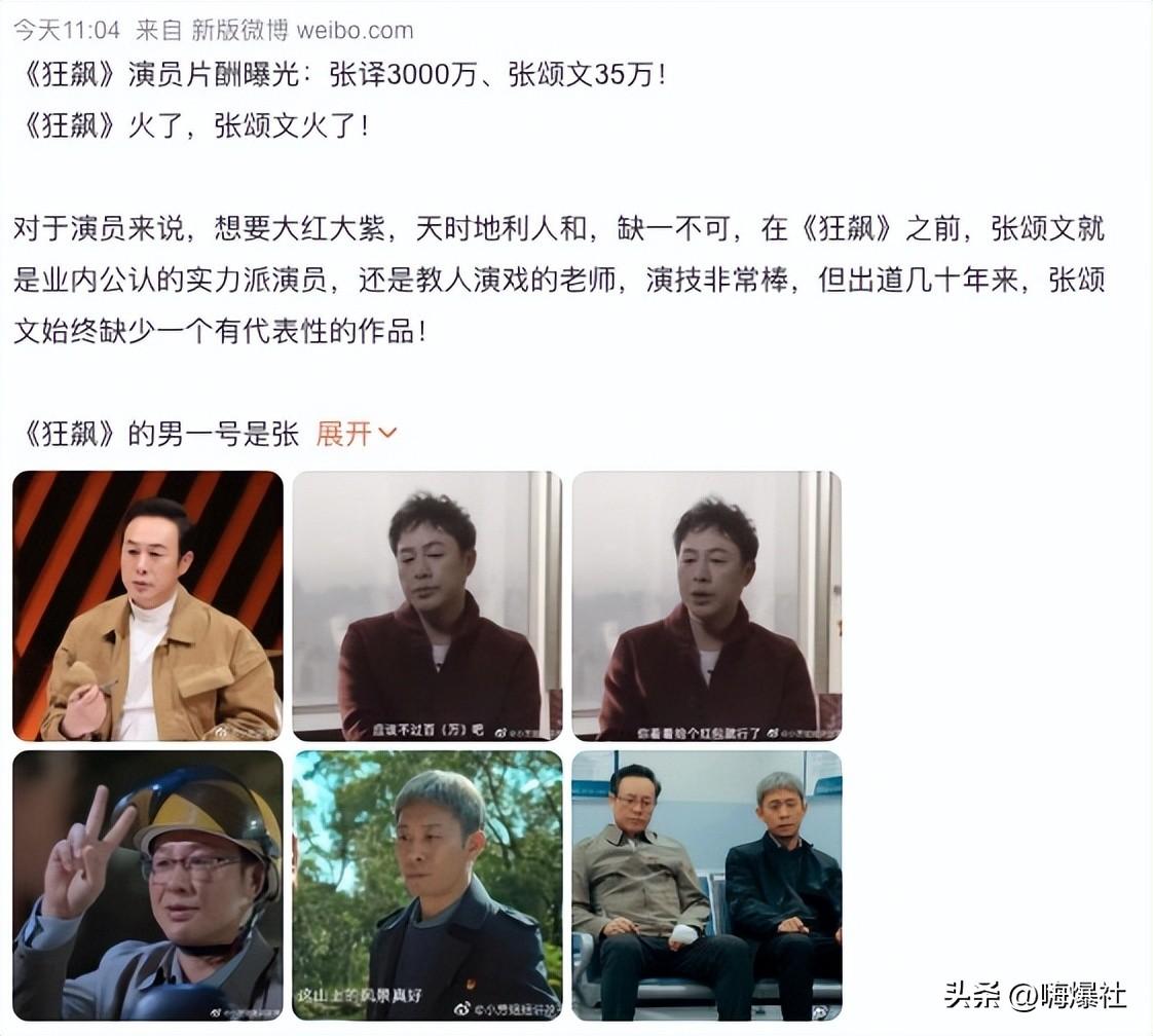 《狂飙》片酬曝光,张译片酬3000万,张颂文却只有35万?-明星片酬公司抽多少