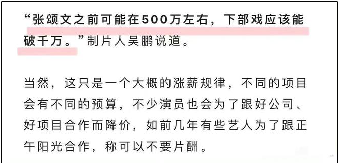 而张颂文,大概在500万左右,因为他最近几年才被观众熟知,所以要低一些!