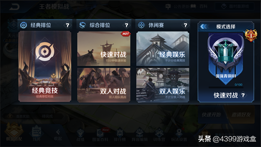 6、新增综合排位:和经典排位是两个独立模拟,综合排位可通过【双人战】、【快速对战】、【休闲赛】来获取分数(对于那些不喜欢节奏太长的玩家来说是很好事,既能拥有属于自己的段位又不需要花费太多时间,)