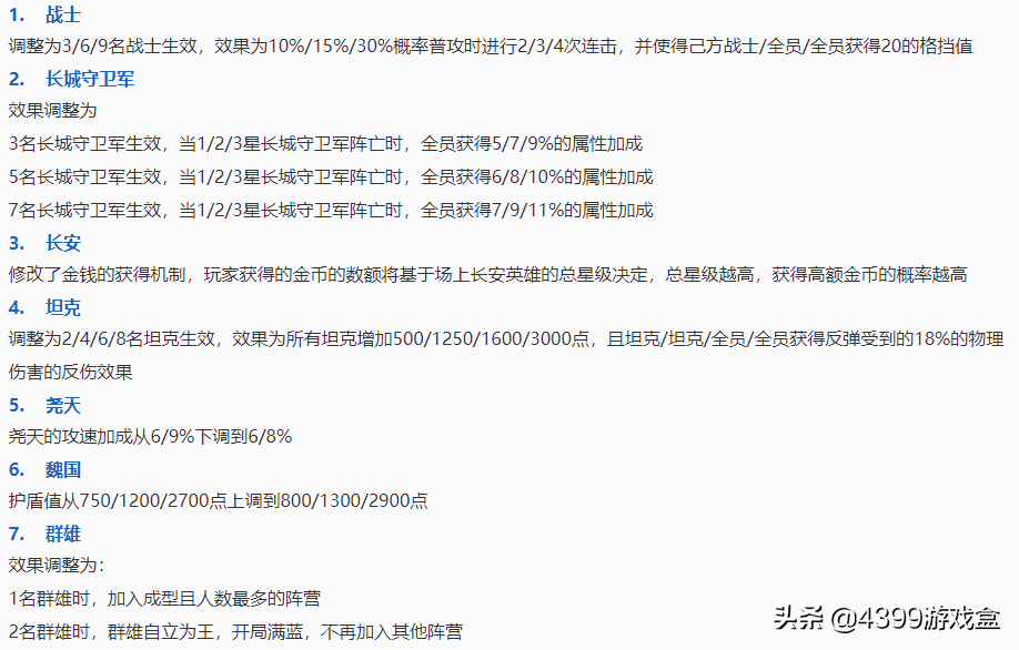 9、部分羁绊调整:尧天、长安削弱,魏国加强、战士、长城、坦克平调