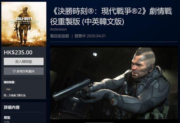 昨天《使命召唤:现代战争2》战役重制版已经正式登陆了PS4平台,并且限时独占一个月。不过当时游戏在PS4港服的定价为235港币(约215人民币),相比Xbox港服155港币(约141人民币)贵了整整80元。