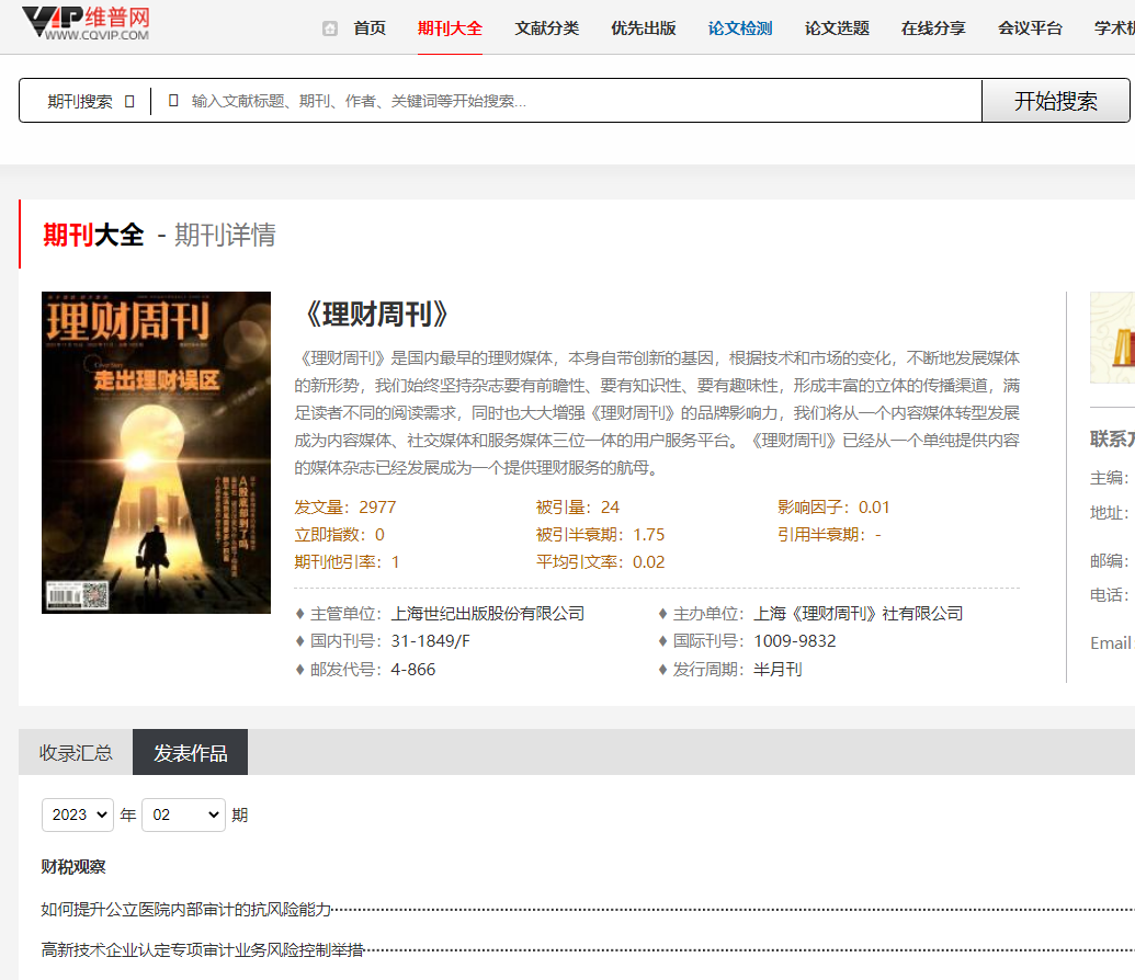 《理财周刊》知网收录吗?