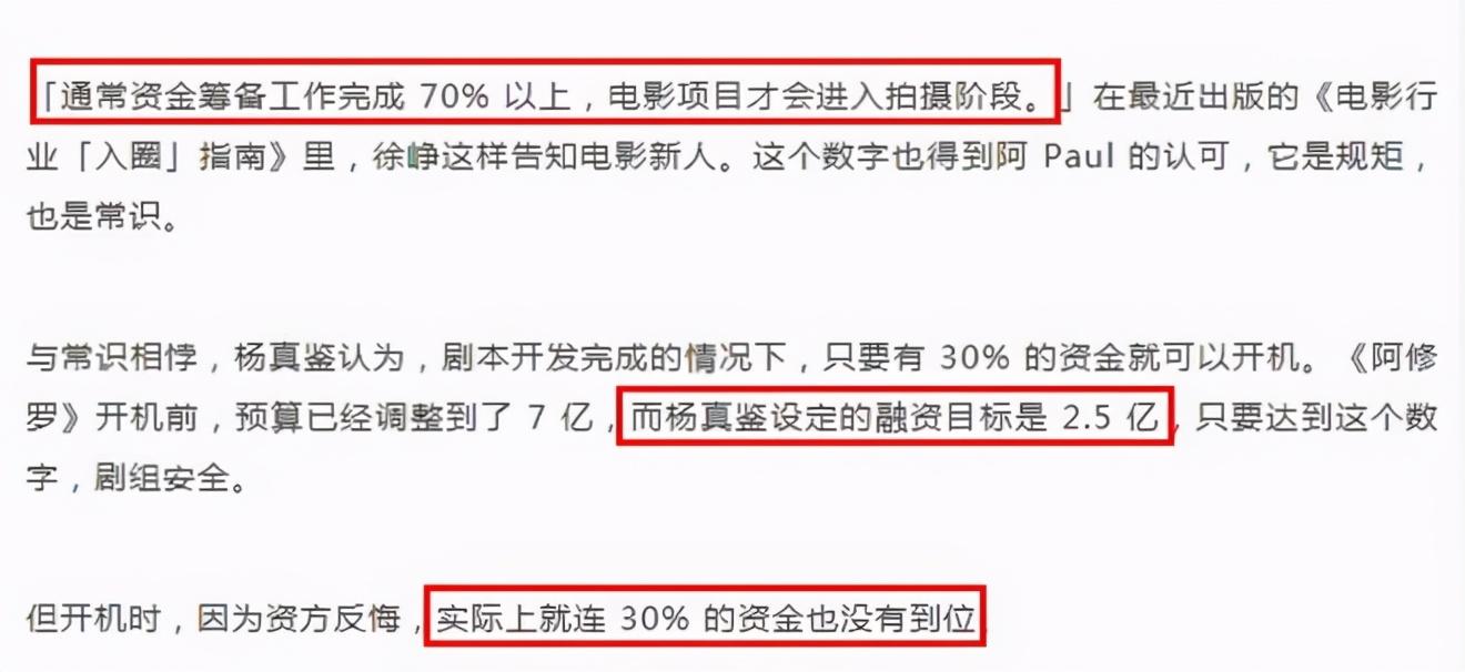 而实际上,《阿修罗》从筹备伊始,资金就一直有缺口。据知情人在网上透露说,开机的时候连30%的资金都还没准备好。