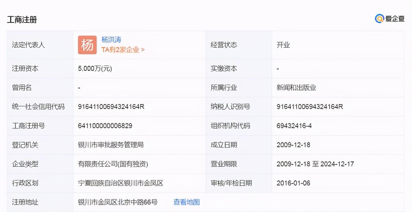 宁夏电影集团企业公开信息中,法人代表是杨洪涛