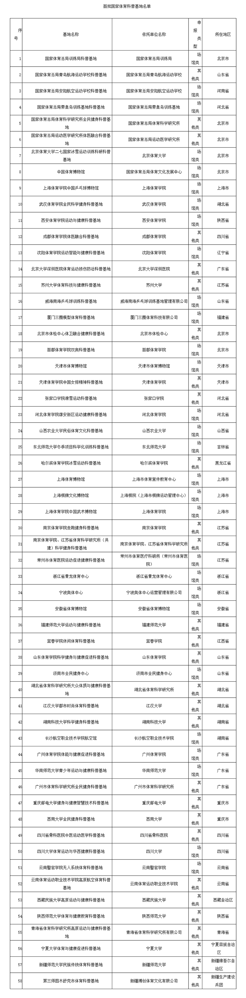 4.国家体育总局、科技部公布首批国家体育科普基地名单;