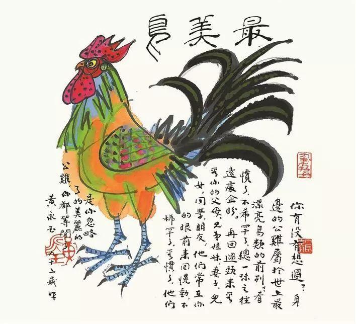 “在这套邮票中黄先生的绘画风格或者说想传达的信息已经改变了。直到《癸卯年》邮票,黄先生创作的生肖形象已经充分地体现出黄先生一贯的有趣与放松,体现出一个百岁老人对于生肖文化的不同理解。”王静认为,“毕加索曾说过:‘我花了四年时间画得像拉斐尔一样,但用一生的时间,才能像孩子一样画画。’我臆想这句话或许也适合黄先生,他现在的作品或张扬或粗犷,或可爱或激昂,内容或诙谐或戏虐,看起来像是随手而就,再配上‘黄氏幽默’的题款,充满非凡的趣味性。”