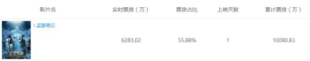 8月4日凌晨,《盗墓笔记》票房3904.86万。截止至8月5日中午11:30,票房已破一亿。