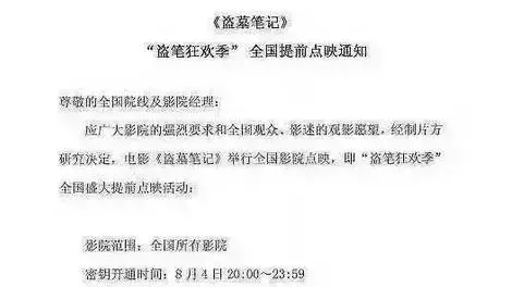 8月4号晚上8点《盗墓笔记》美其名点映,实则提档,大IP+小鲜肉,“卖相”如此冠军相的影片,影院经理怎肯放过好机会。