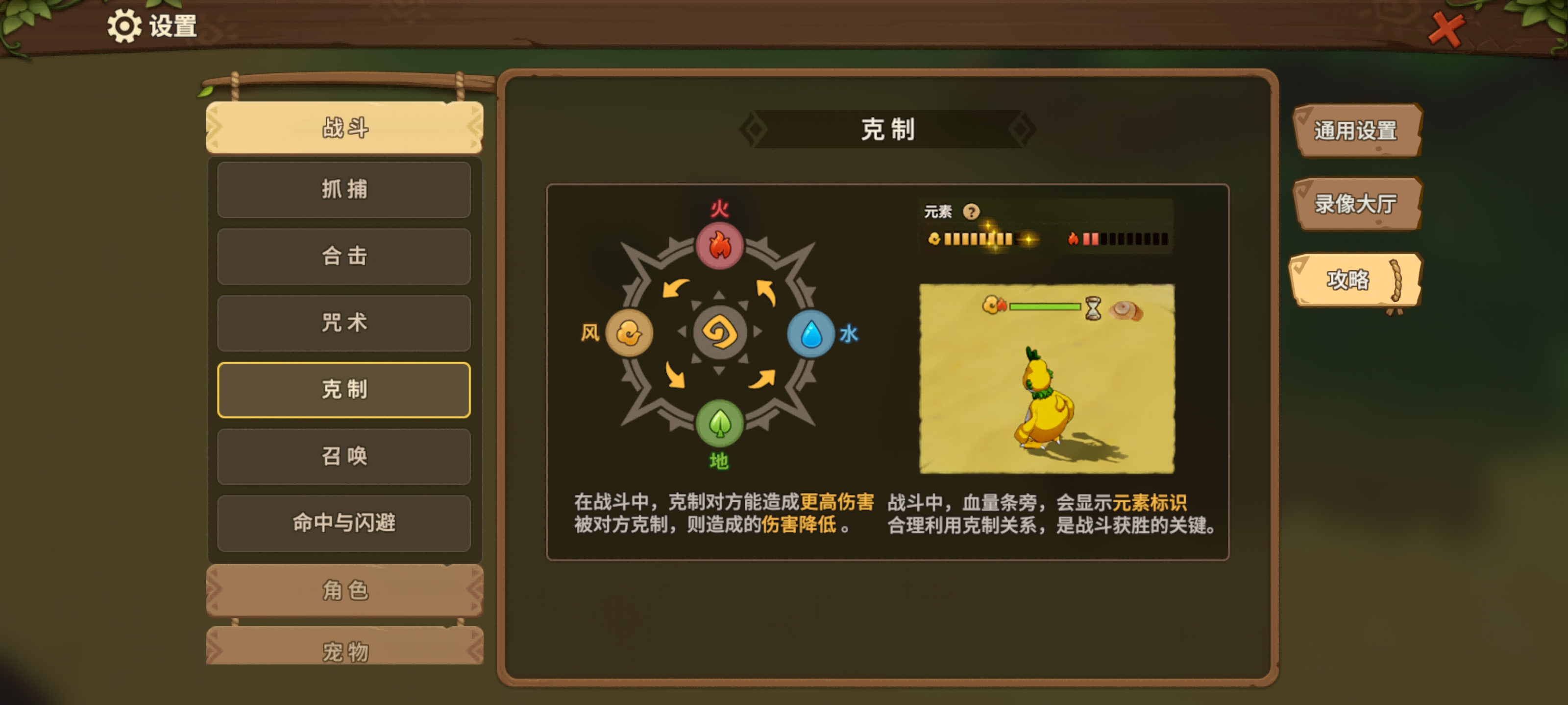 1.属性判断阶段:判断对方属性,通过调度己方宠物来获取属性优势;