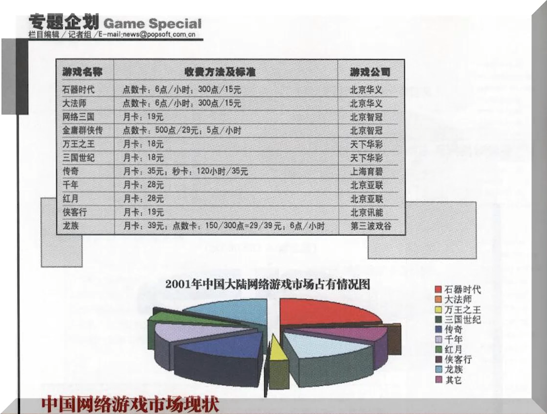 《大众软件》曾统计过大陆网络游戏的市场占有情况,你可以看到《石器时代》当年是如何风靡神州的